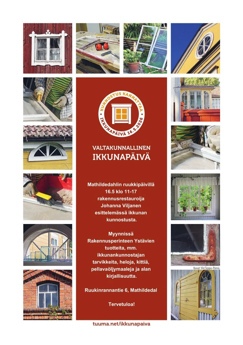 Mathildedahlin ruukkipäivillä 16.5 klo 11-17 rakennusrestauroija Johanna Viljanen esittelemässä ikkunan kunnostusta.